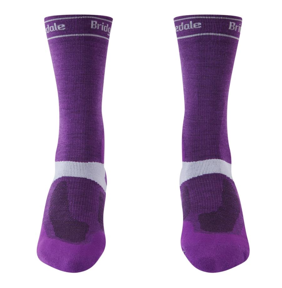 Specifically designed for Mountain Bikers, by Mountain Bikers over a three-year development process, the Bridgedale MTB sock is a game changer in terms of comfort and durability. The Mid-Season Weight T2 Merino Sport combines strategic pads with overfoot mesh ventilation to create the perfect weight for Spring and Autumn, and comes with a host of unique features. An anatomical vibration dampening footbed, designed to alleviate the underfoot discomfort from the pedals as you hurtle downhill. Your achilles and ankle are protected with strategically knit pads. The specifically designed left and right socks give you the padding and protection exactly where you need it on the outside of your foot and around your toes. The Sport Fit gives supportive compression for stability and balance around the ankle and mid foot and the tighter knit cuff gives an extended close fit to prevent debris getting in and means your sock won’t slip down or bunch in your footwear. Merino Sport Fusion Technology provides resilient padding, moisture wicking, odour control and outstanding durability on the trails. The ultimate sock for those cool Spring and Autumn MTB days.