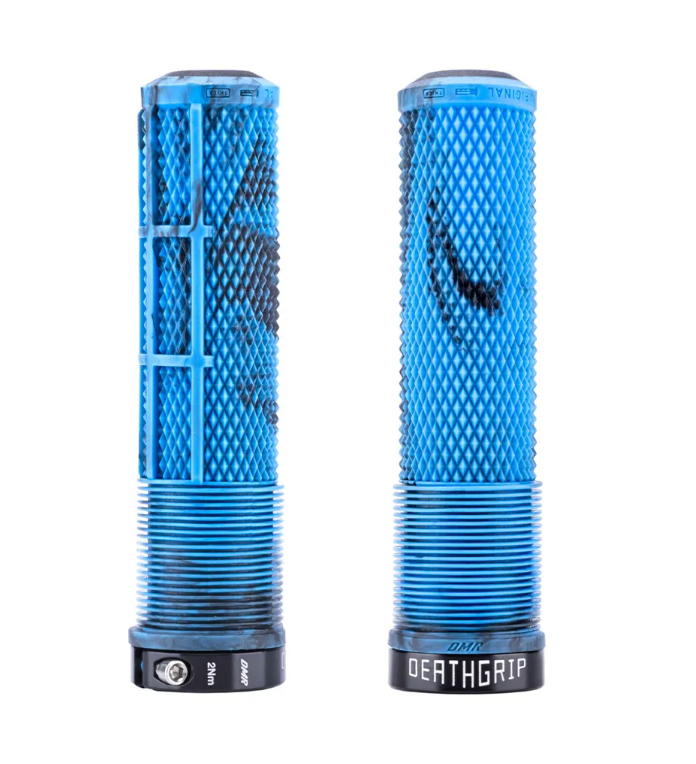 The DMR Deathgrip2 features the grip pattern and layout that inspired a whole generation of mountain bike grips – it starts with a soft mushroom section for comfort in the thumb and forefinger area, preventing blisters in a soft-tissue zone. Next, the grip pattern features diamond knurl for grip in all conditions and all terrains – and the waffle layout underside holds your fingers in the perfect position for grip and control. A tapered core means the Deathgrip is firmly mounted onto your handlebars with ease and the use of just one lockring keeps things simple and tight. The krayton rubber grip compounds we use are soft and comfortable, yet durable and lightweight. Select thin or thick diameters, and with or without flanges – the choice is yours.