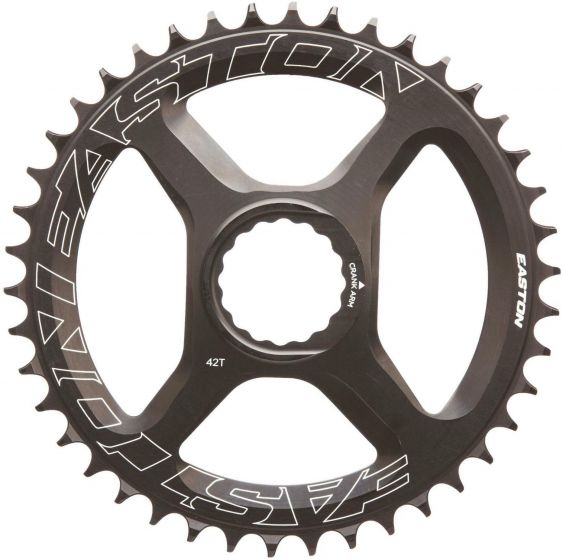 The individual tooth profile has moved from the traditional symmetrical shape to a more directional specific design with the intention to create a positive chain roller engagement. This helps with chain retention and is critical to prevent chain slip and bounce over rough terrain. Combined with taller teeth the Easton narrow/wide ring can be used without a chain guide or clutch derailleur. Wide-tooth material has been removed from each side to reduce running noise and drag when running at extreme edges of the cassette. Combined with additional material removal at the base of the teeth ensuring excellent mud shed and chain retention in the muddiest of CX conditions. To connect the outer ring to the Cinch interface an asymmetric four arm shape allowing for larger stiffer arms in the power zones of the pedal stoke and an overall reduction of weight with thinner arms in pedalling zones that experience less torque.