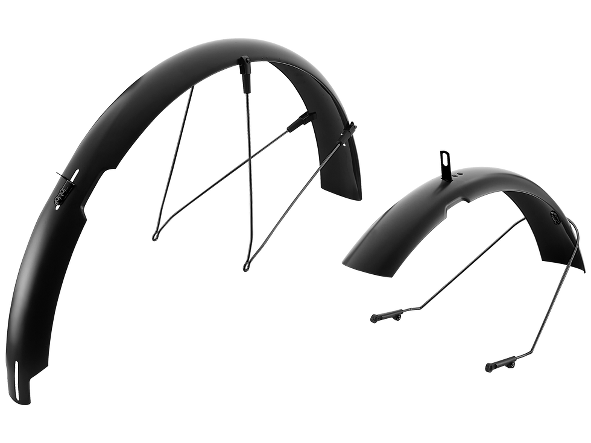Get where you’re going looking as good as when you left with this easy-to-mount lightweight mudguard set, which keeps water, mud and dust away from you and your clothes. This stylish matte black mudguard set will elevate your bike and your look!
