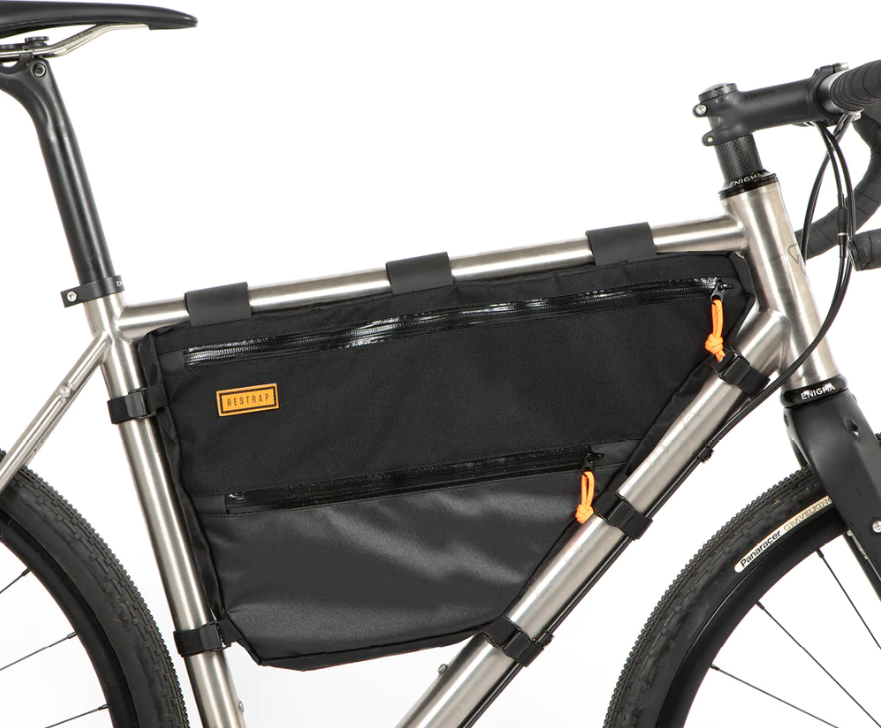 The Restrap Full Frame Bag allows you to easily increase the load out you carry for comfortable bikepacking and touring. The bags come in three sizes, designed to fit most standard frames and geometries.