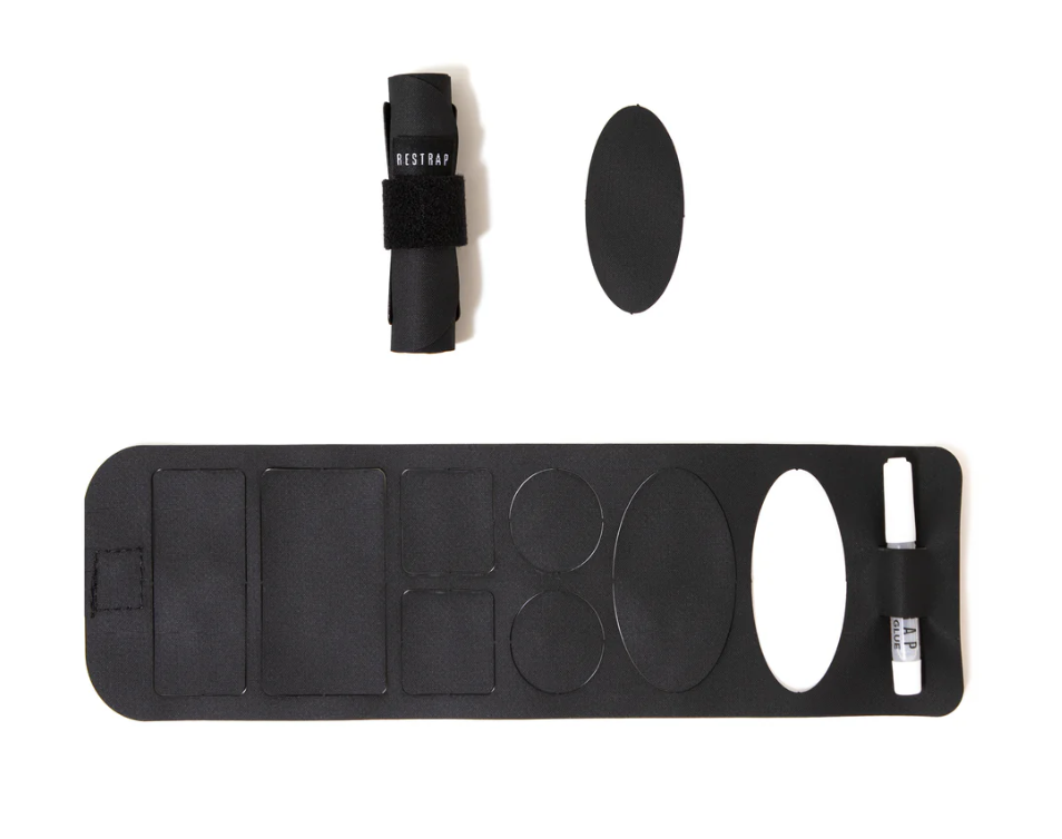 A tube of glue is included to help mend the trickiest of tears and a double-sided velcro retention strap keeps things compact and pack-friendly. A simple solution to get you out of a sticky situation.