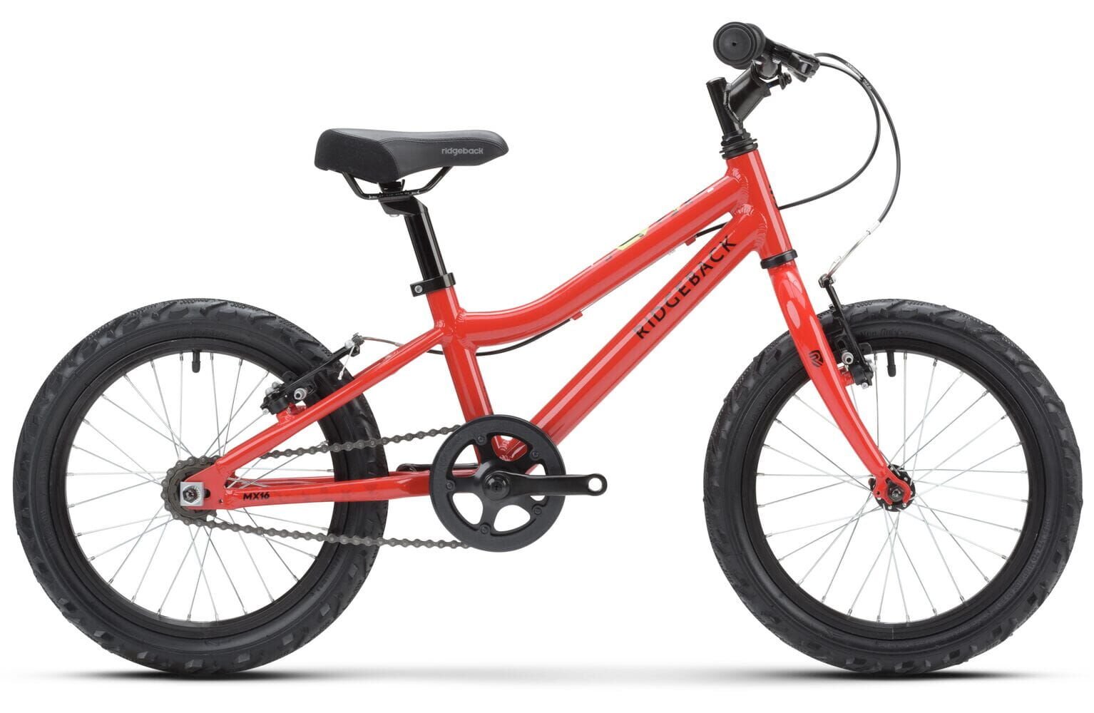 With 16-inch wheels and child-sized parts throughout, the Ridgeback MX16 is ideal for kids around 105?120cm tall. It comes equipped with easy-to-use brakes, a comfortable saddle, and fun styling that makes every ride exciting.