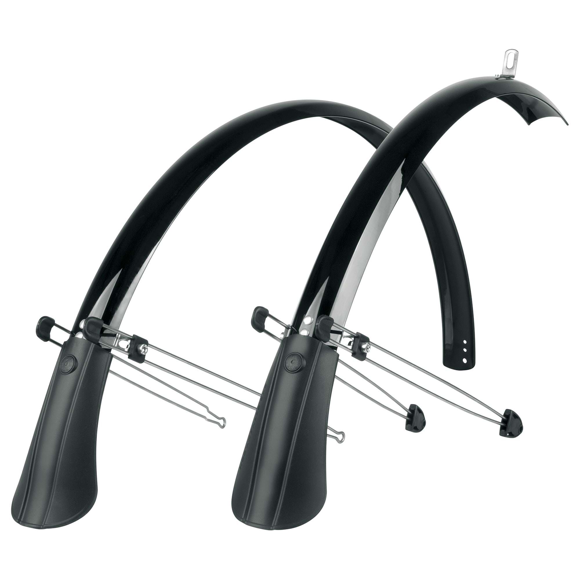 Full length mudguard set with zink-plated and pre-assembled twin-parallel stays.