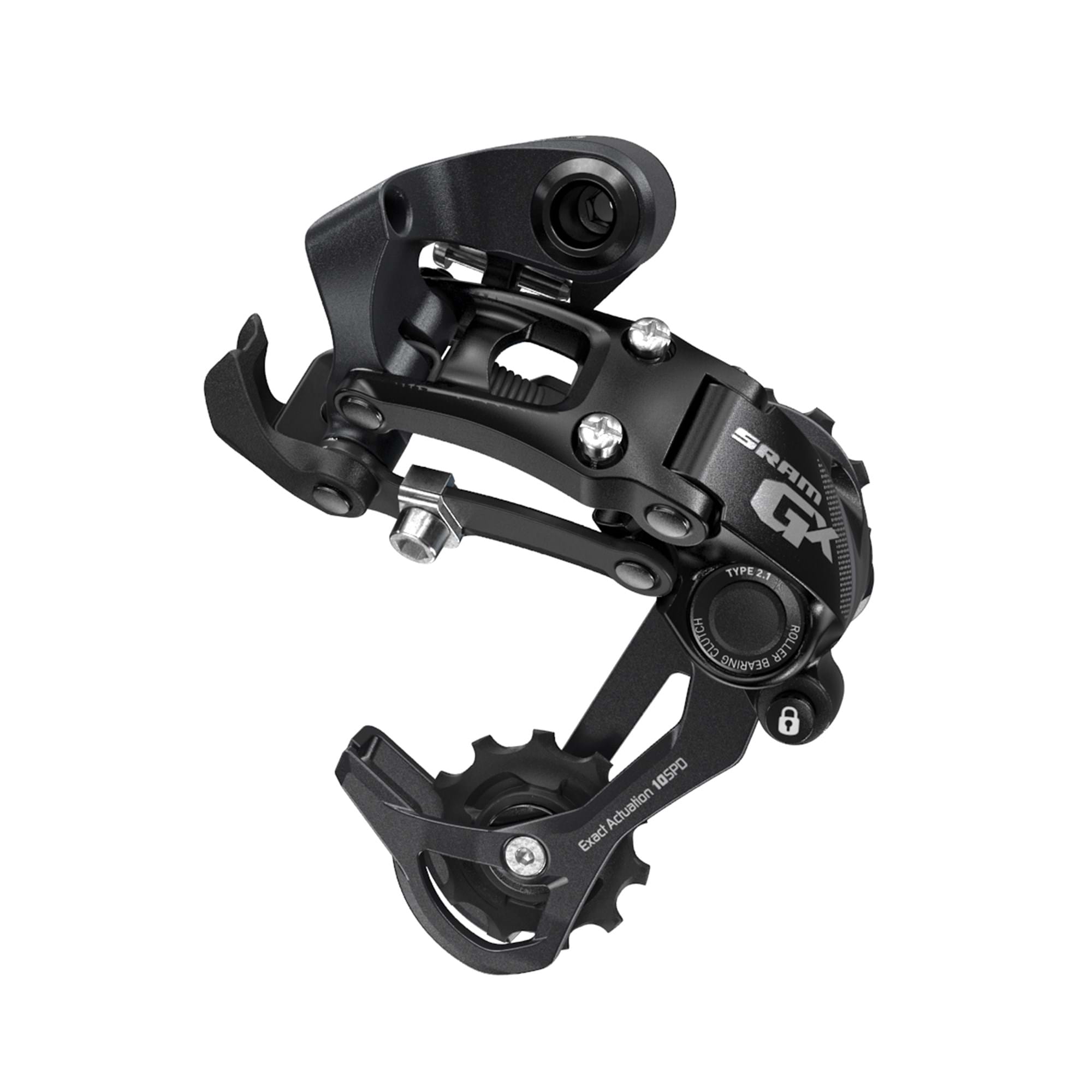 Leveraging the legendary history of SRAM shifting, the GX 2x10 rear derailleur provides incredible shifting speed and precision. EXACT ACTUATION™ technology eliminates slop and shifting variation. ROLLER BEARING CLUTCH™ technology delivers maximum drivetrain stability—even through the most punishing terrain. And with CAGE LOCK™ technology, wheel removal and installation are easier than ever.