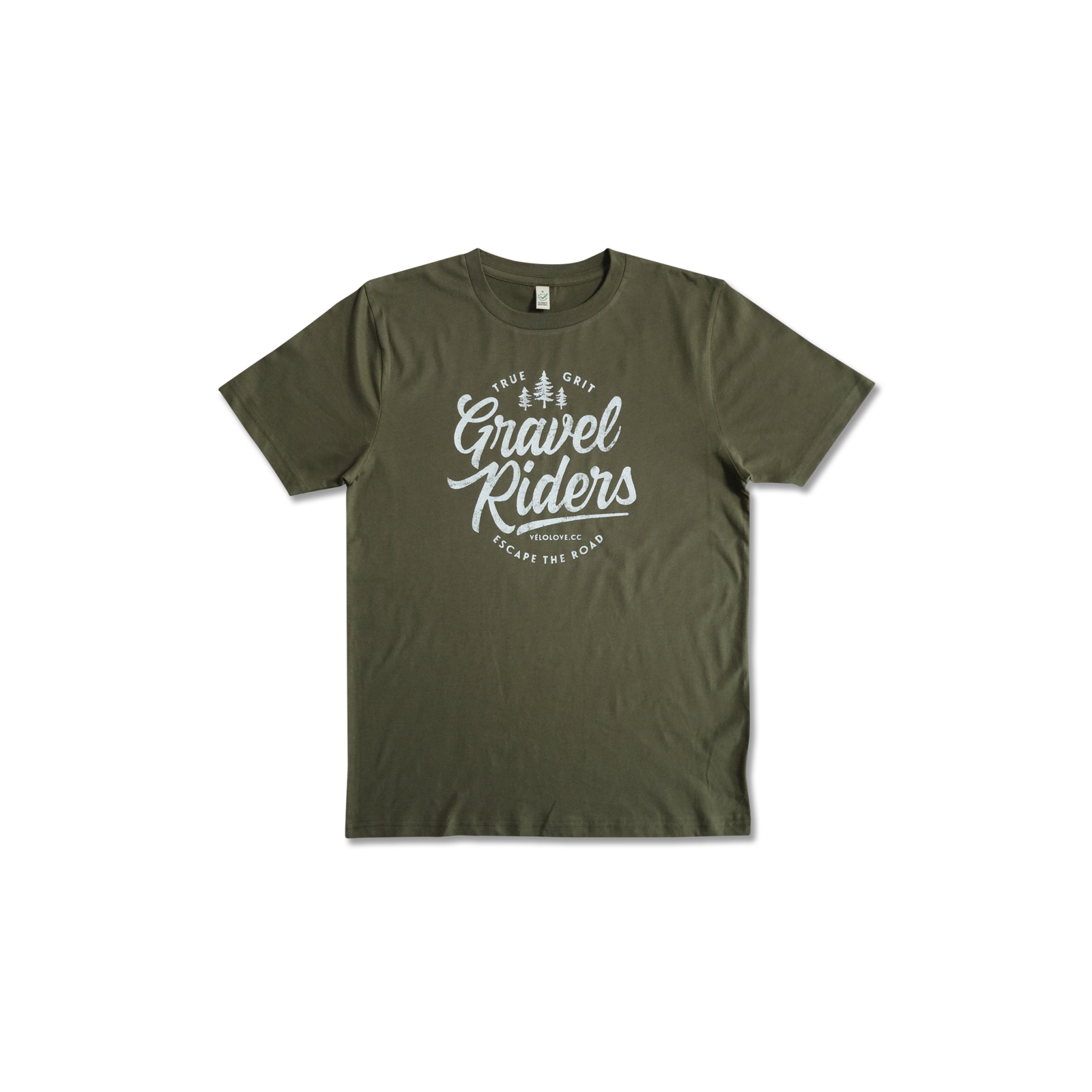 Velolove Gravel Riders Organic Army Green And White T-Shirt